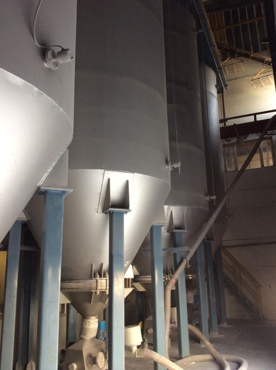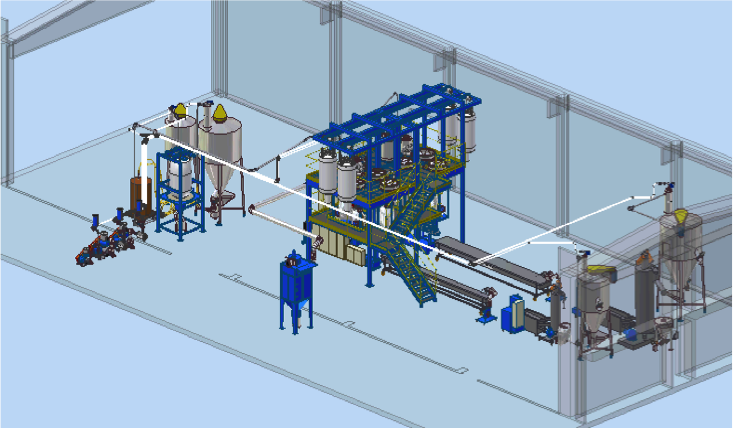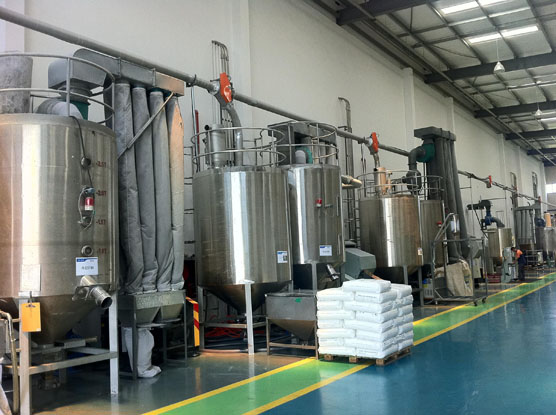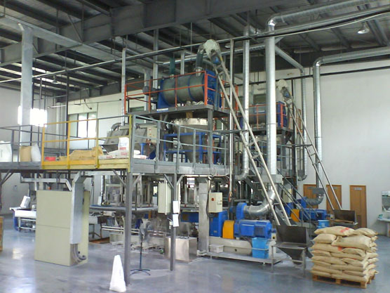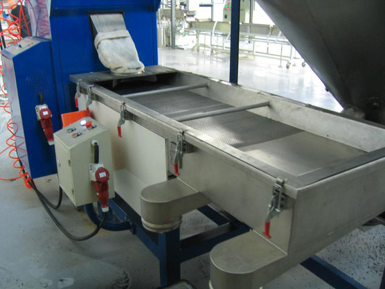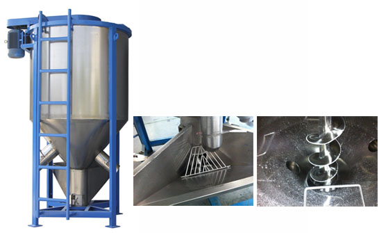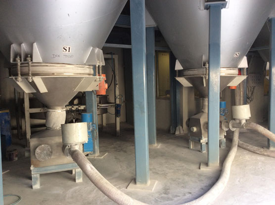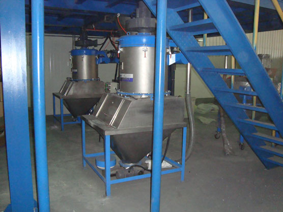 ▲排出物料從秤到預(yù)混合器,然后到失重式進料器